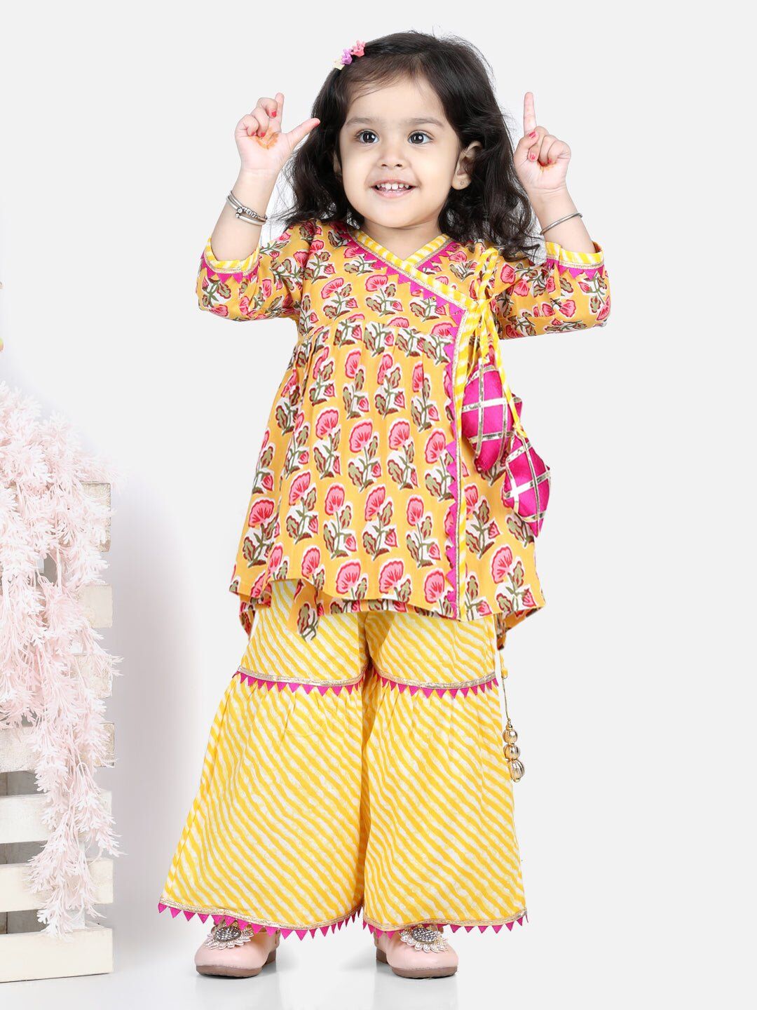 Stay stylish and comfortable with the Block Print Cotton Angrakha and Sharara set. Crafted with premium cotton fabric, this yellow set features a vibrant traditional block print for an ethnic touch. The set is lightweight and breathable, perfect for summer days.